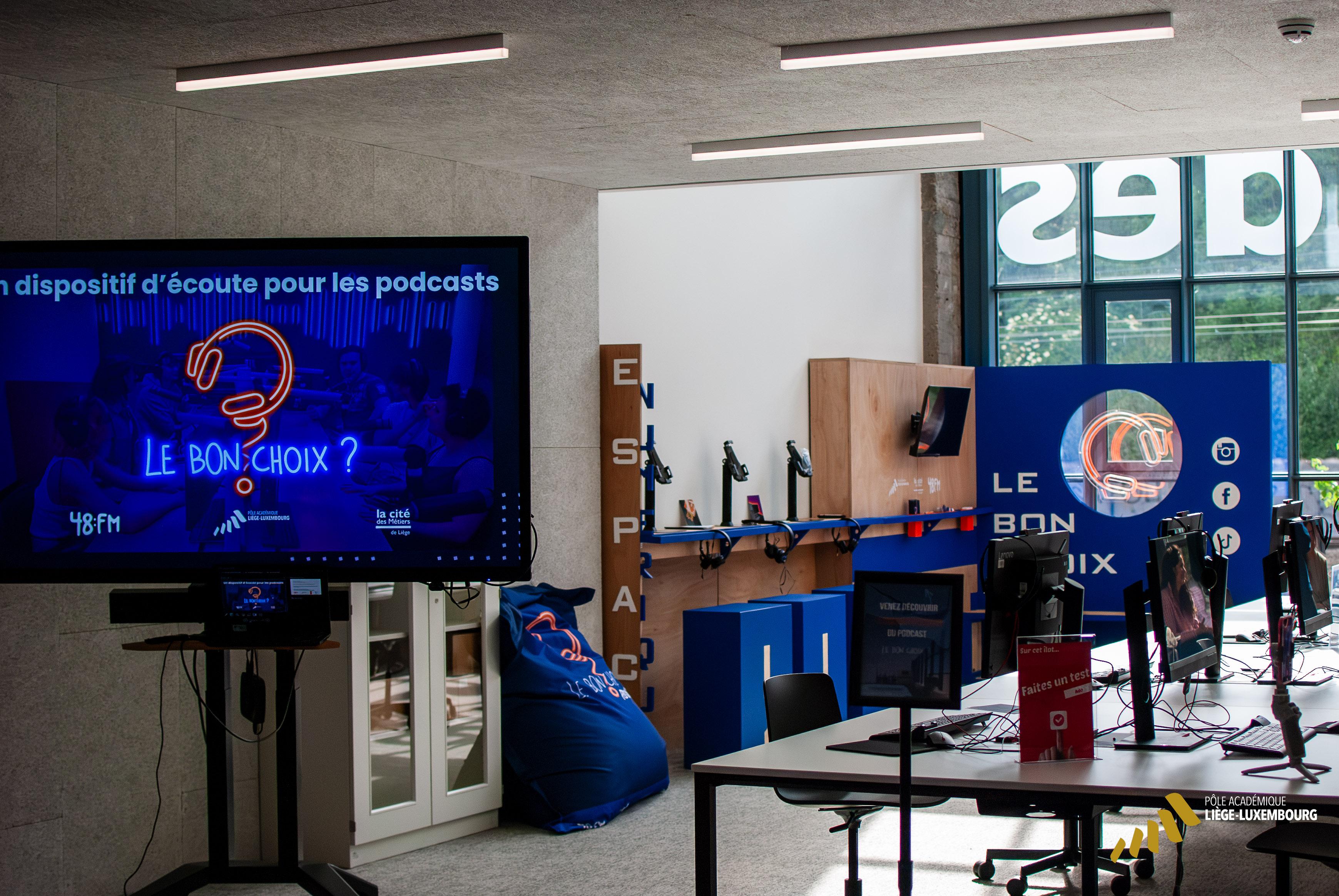 Le 26 mai 2025 a été inauguré dans l’espace numérique de la Cité des Métiers de Liège un dispositif spécialement conçu pour écouter les podcasts Le Bon Choix !