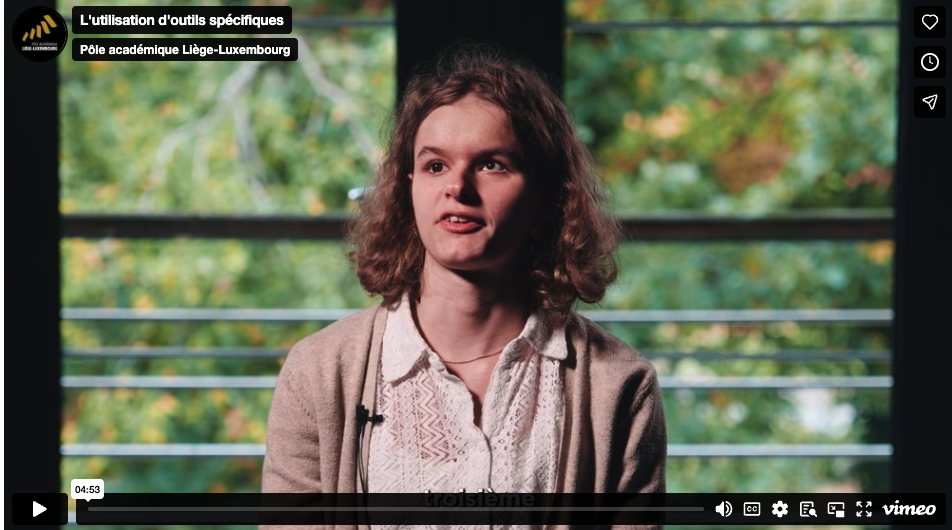 La capsule #7 aborde quant à elle l’adaptation du local. Témoignages de deux étudiantes et expertise du service inclusion illustrent des ajustements très concrets : local séparé lors d’évaluations, accès à un espace de repos, accessibilité PMR, adaptations matérielles du local ou changement de salle lorsque cela s’avère nécessaire.